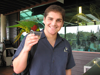 The Garden was followed by the Juroong Bird Park. I got to watch a few very cools shows and also see several exhibits. I absolutely loved the park but anything with animals will is usually first with me. For me, animals are like food...my favorite is usually what is right in front of me. One of the best parts of the park was the lori aviary. It is huge and has hundreds of colorful lories. I’ll include some pictures. The best part is that you can feed them so they flock all around you like pidgins in central park…OK, I guess that only I like that…On the way to my next stop, I met a person after my own heart…a kindred spirit. My cab driver, Andy, happened to be from the neighborhood that I was going to tour, Katoong. He was excited that I was going to tour his neighborhood and sample the local cuisine. As the conversation quickly turned to food in general, I quickly felt like we were old war buddies trading stories of bravery and comparing scars…except we were actually two fat guys trading restaurant tips and comparing what we had both eaten in the last week. Andy was so excited that I wanted to try the local specialty, Katoong Laksa, he took me directly to his favorite restaurant, got out of his cab with the engine running, and ordered for me to make sure everything was perfect. So began what I believe will be an obsession for the rest of my time here in SE Asia…Laksa.