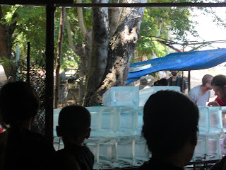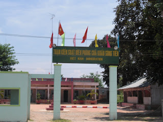 The Vietnamese immigration station at this border crossing looked like it was a roadside hotdog stand in Pigsknuckle, Arkansas. It was a series of shacks in the middle of nowhere. The picture does no justice to how isolated the area is. We were detained in quarantine for about an hour to make sure that we weren’t carrying SARS. Also, while we were waiting, a motorbike hauling about 2 tons of ice almost overturned onto half of my group. Thankfully, I was out of the way buying water about 20 feet away and tried to snap a picture of the incident.