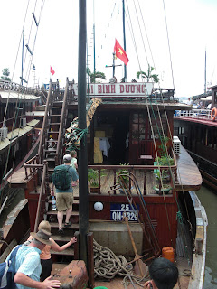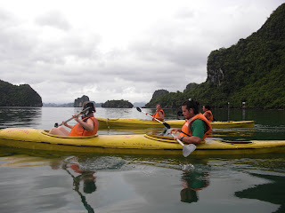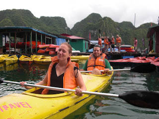 Over the two days, we sailed around the bay, did some ocean kayaking, swam, toured an Island cave, and visited a small floating fishing village. Overall, the trip was pretty good but in true Vietnamese fashion, there were still several mishaps. I think that the boat was pre-WWII. The floorboards were buckled everywhere and it had defiantly seen better days. Also, the engine died for over an hour one day and we just floated. I told our guide, mostly jokingly, that I could help fix the boat. Imagine my surprise about 45 minutes later when she came and asked me to take a look. Thankfully, the crew fixed it before I had to go into the engine compartment. That will teach me to joke about Vietnamese technology.
